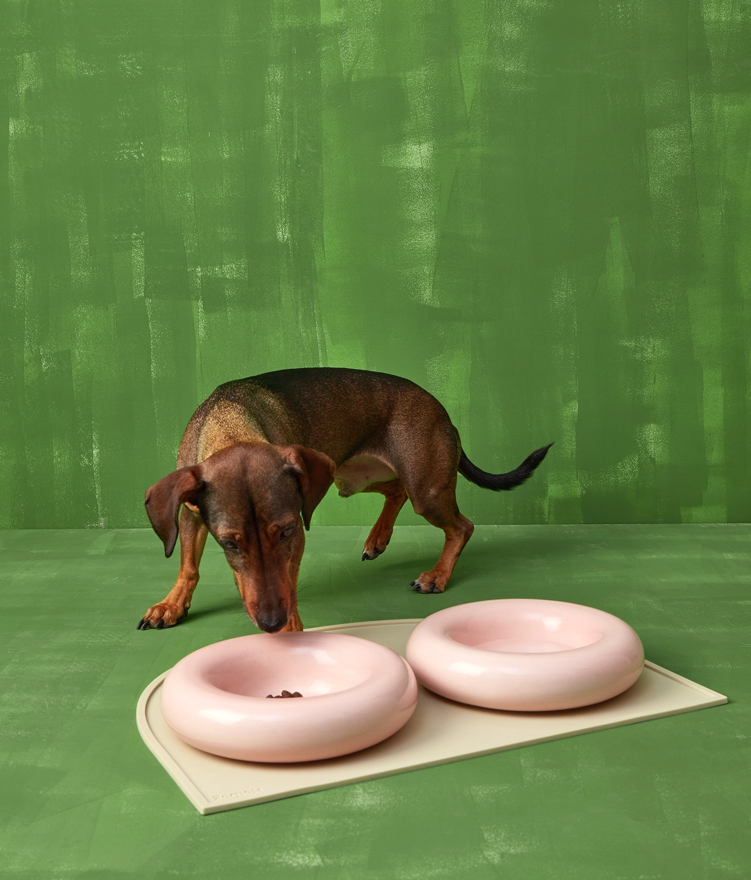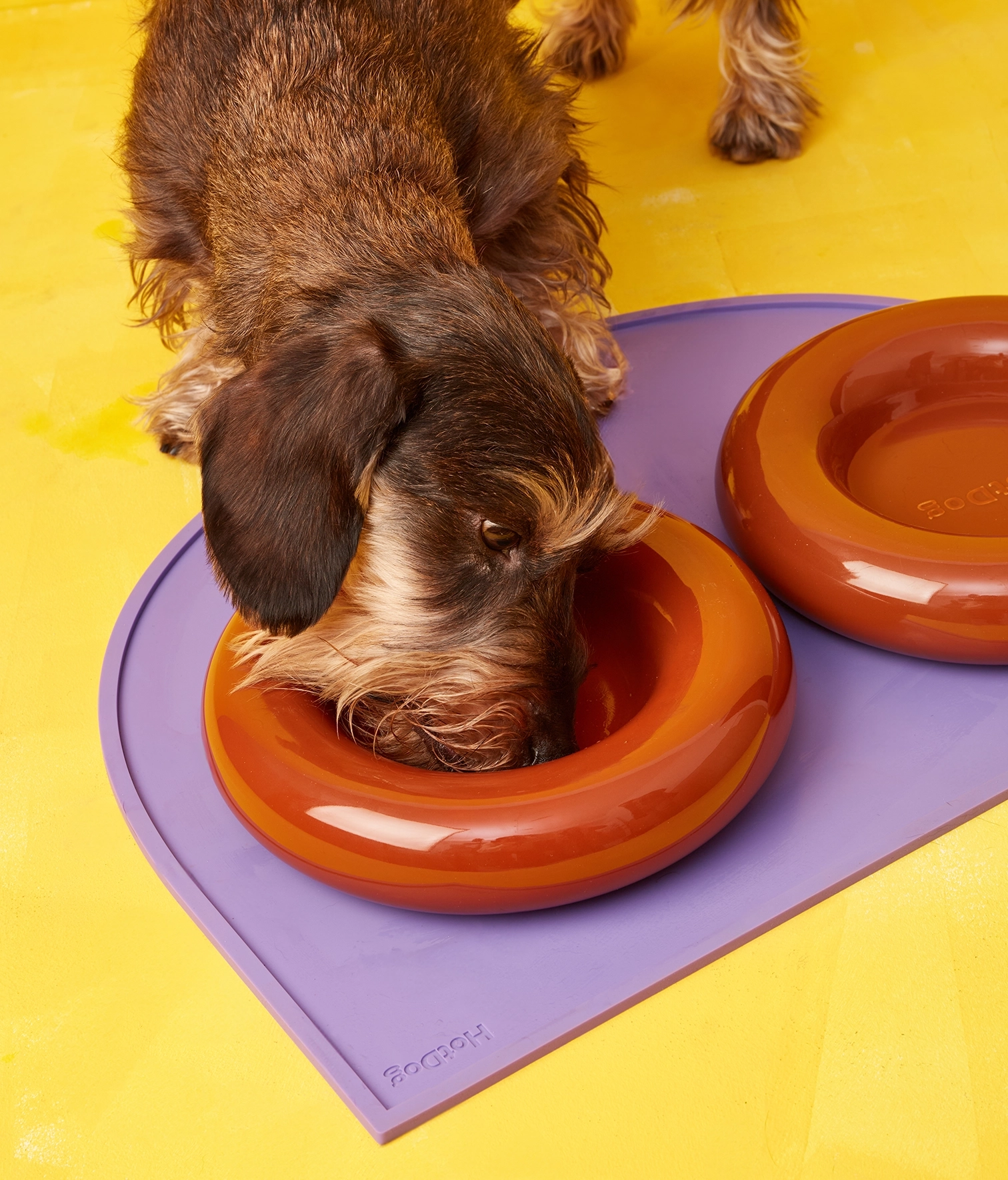 Ceramic bowl for food and/or drink. Available in 2 sizes and 5 colors. Glazed finish for easy cleaning. And enough weight to ensure its stability. Your dog may not appreciate its design, but you probably will.