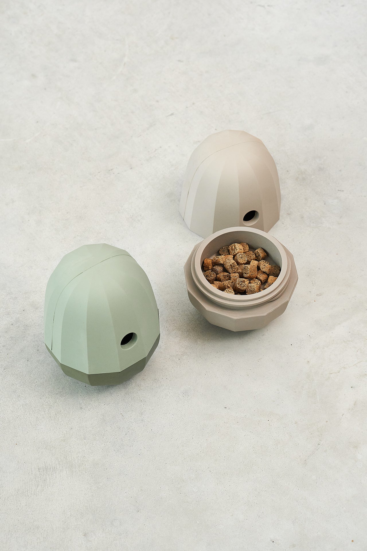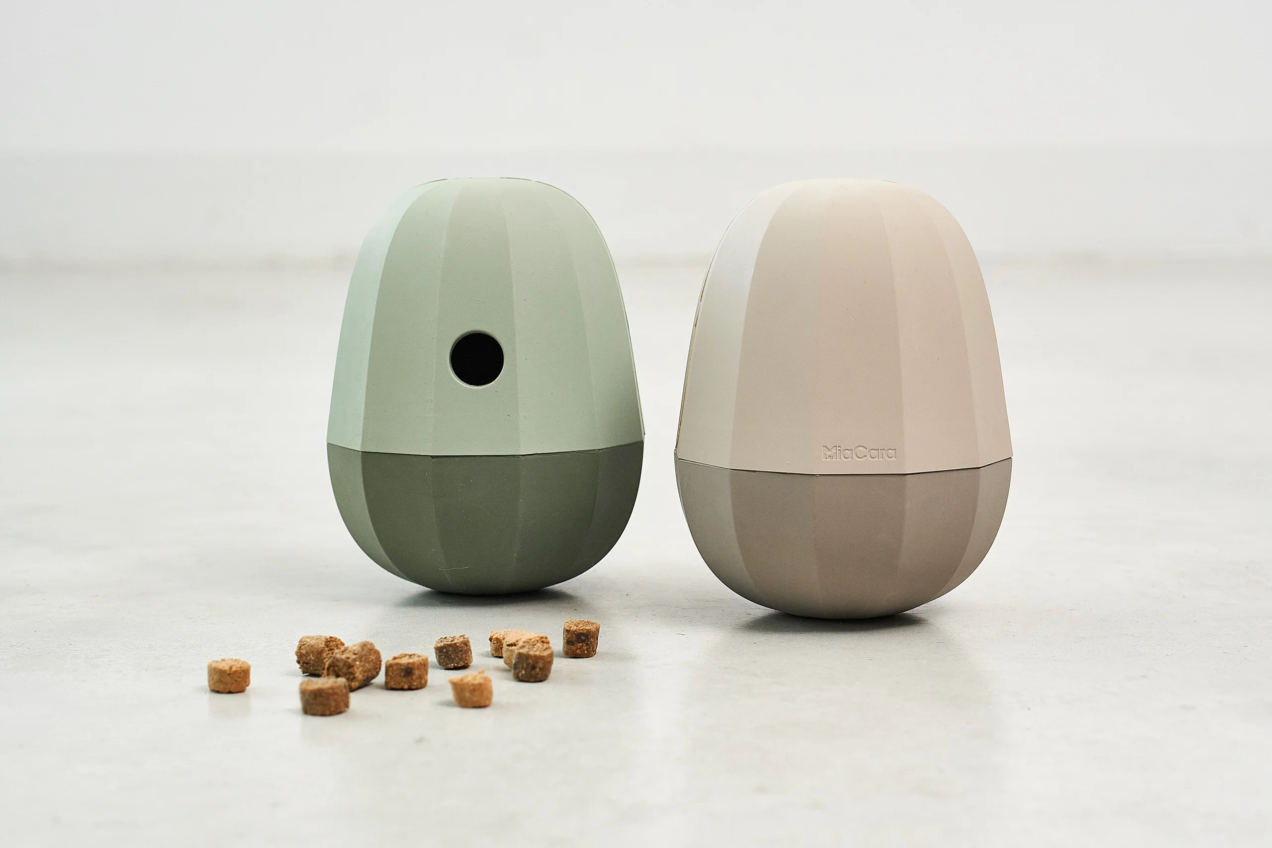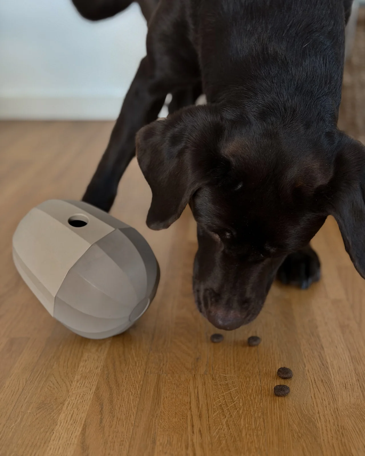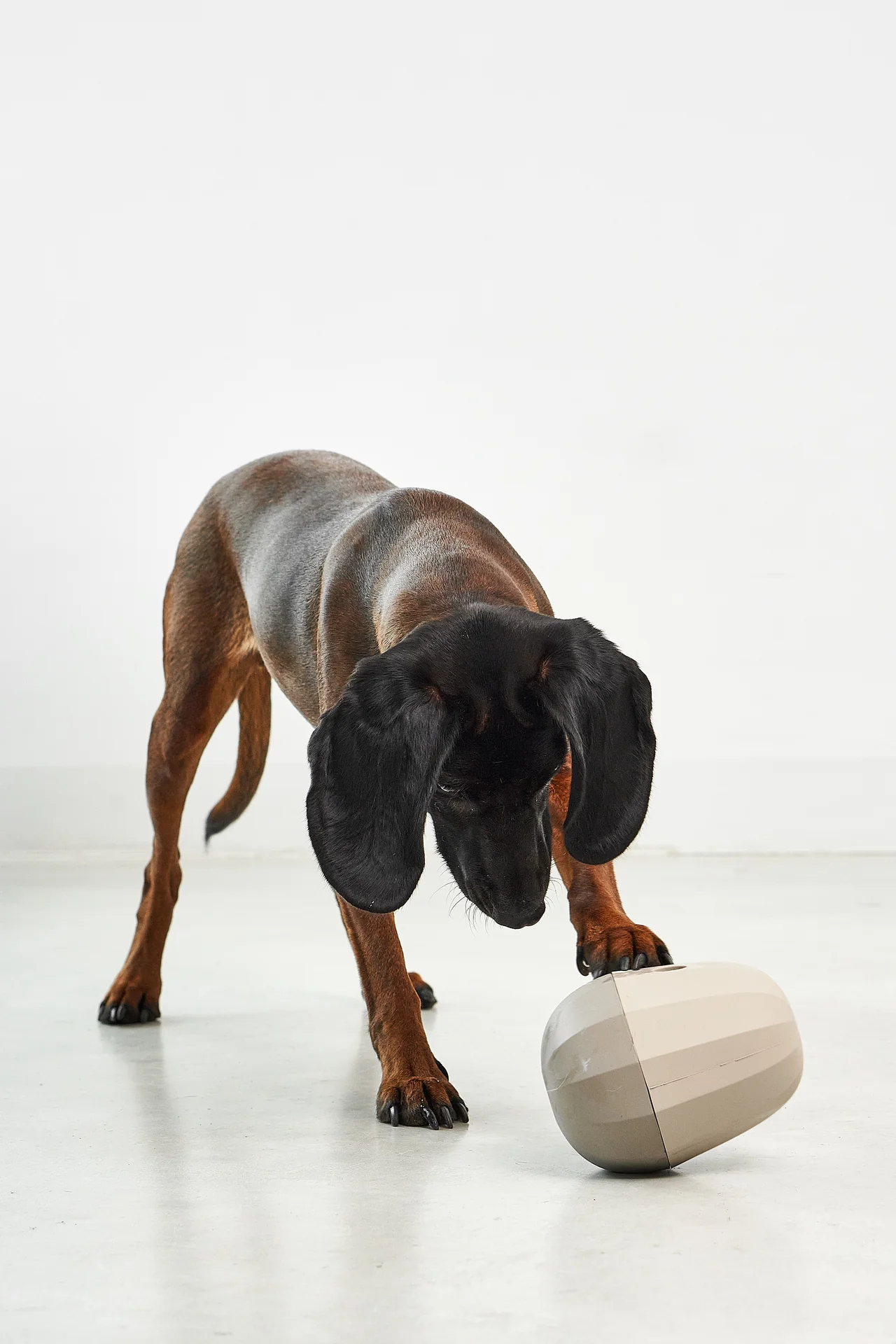 With Uovo, every mealtime becomes an engaging experience for your dog. The modern designed interactive toy stands upright at first – only when your dog nudges it with a paw or nose does it begin to wobble and rotate unpredictably. As it moves, dry food is gradually released through the opening, rewarding curious and active play.